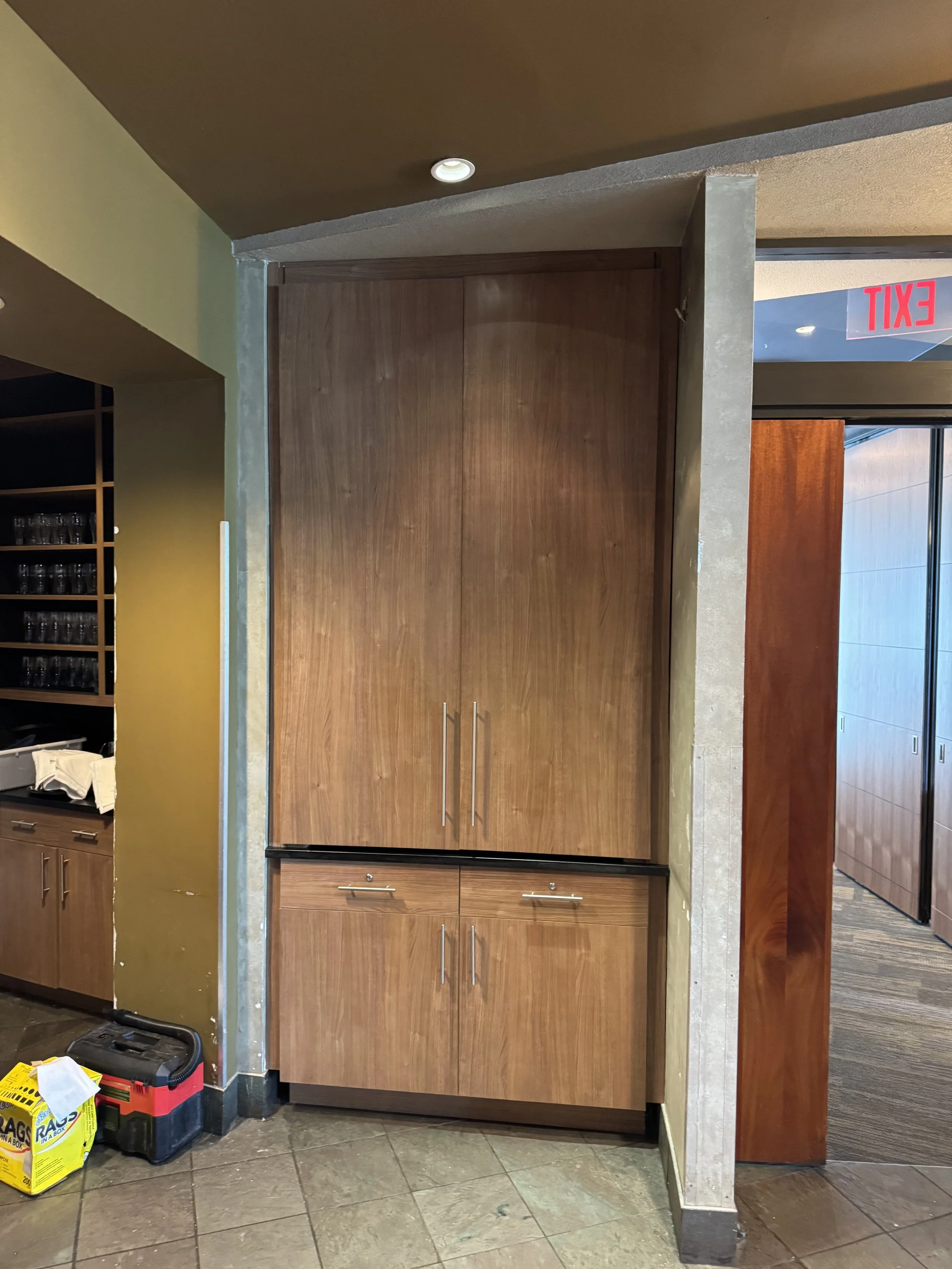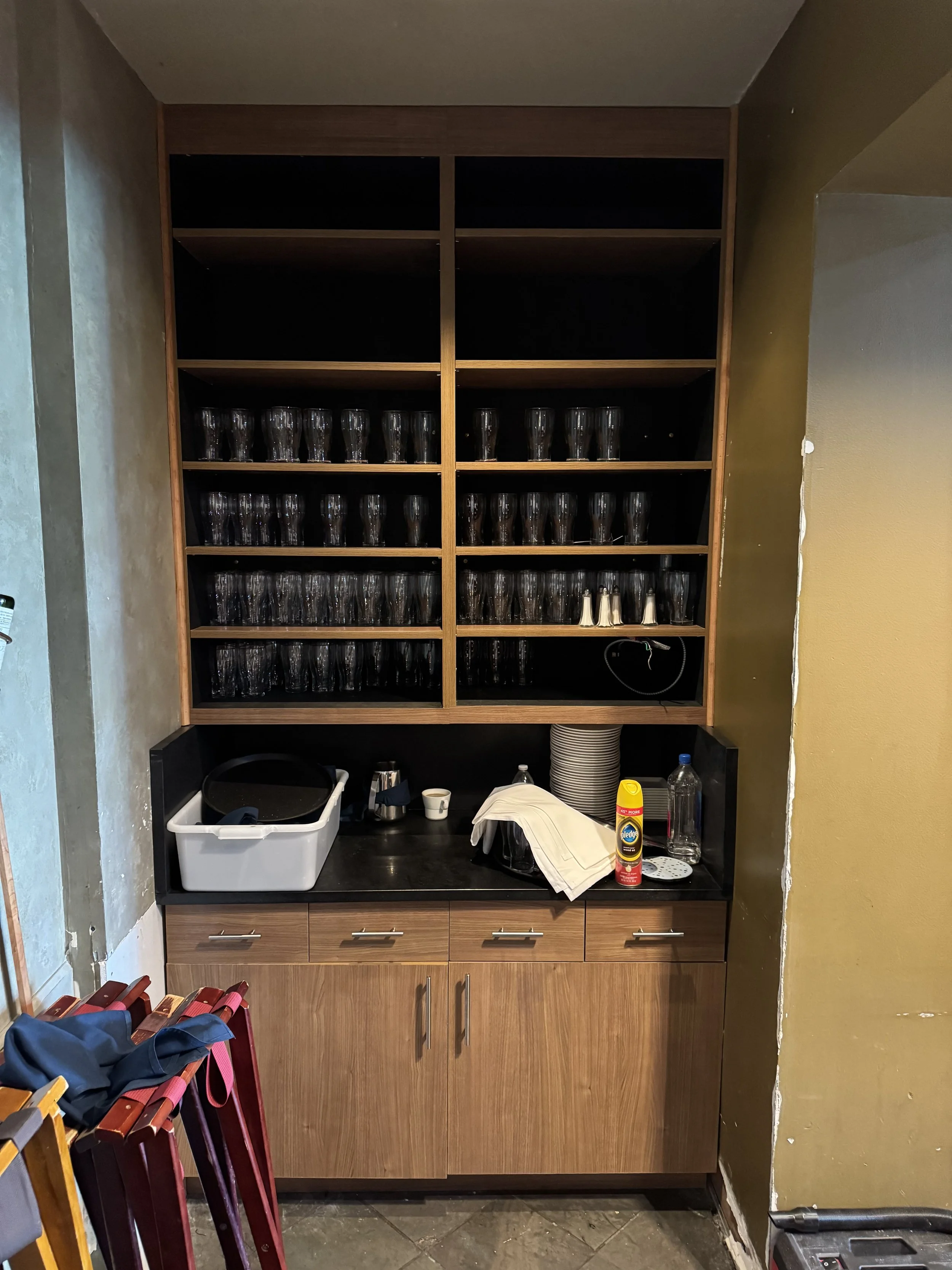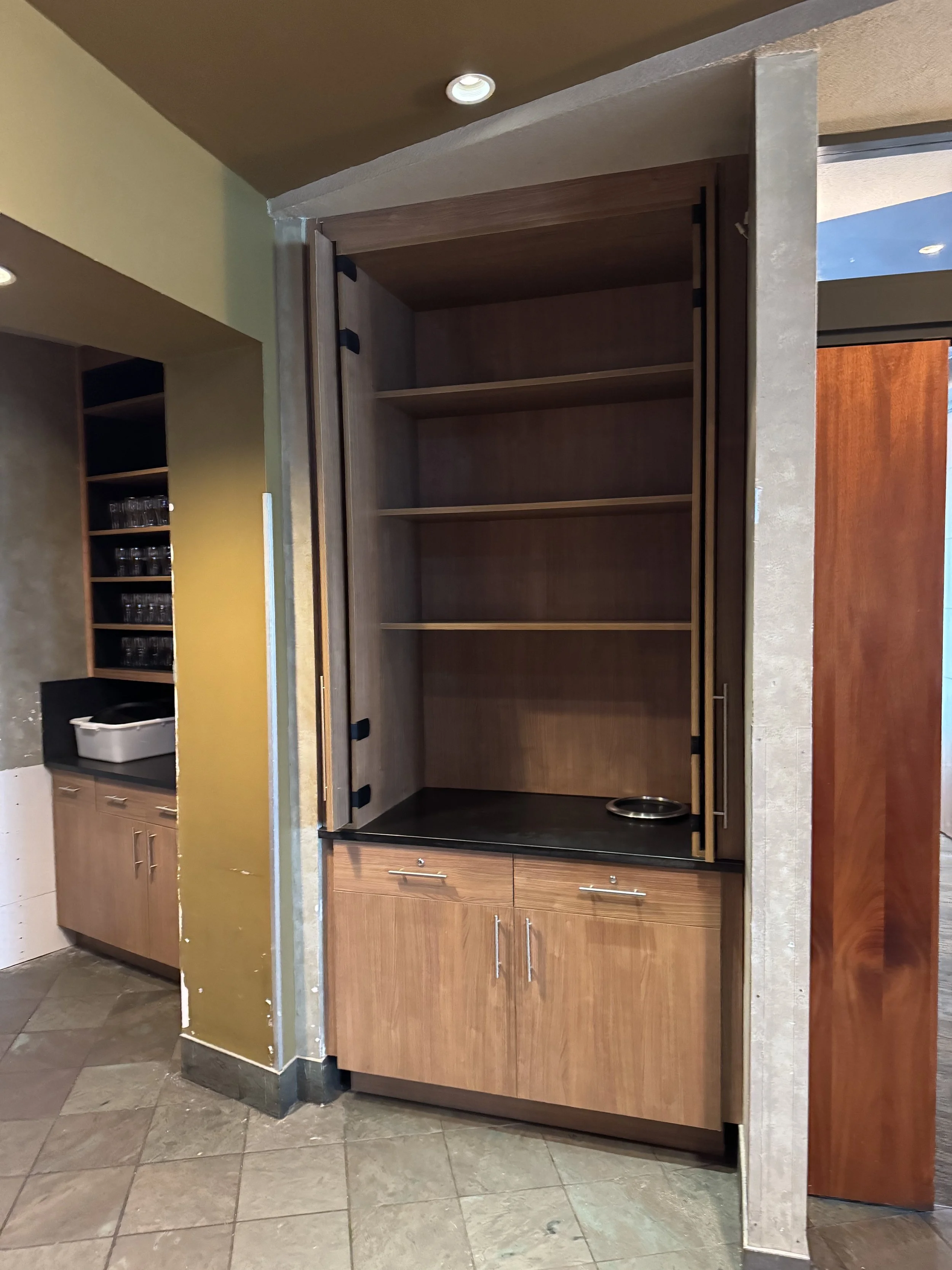 River Cherry Server Station and Pocket Door Wine Cabinet